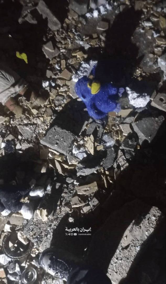 وتُظهر اللقطات مشاهد مؤثرة لمتعلقات شخصية وألعاب أطفال مبعثرة بين الركام، في دلالة مؤلمة على حجم الخسائر الإنسانية التي خلّفها الهجوم الارهابي الامريكي الصهيوني.