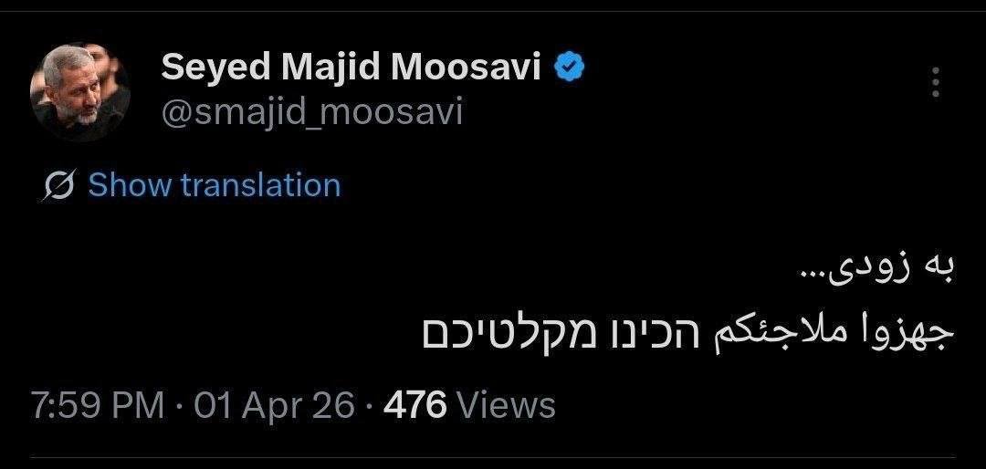 تغريده بالعبريه للإسرائيليين يقول فيها