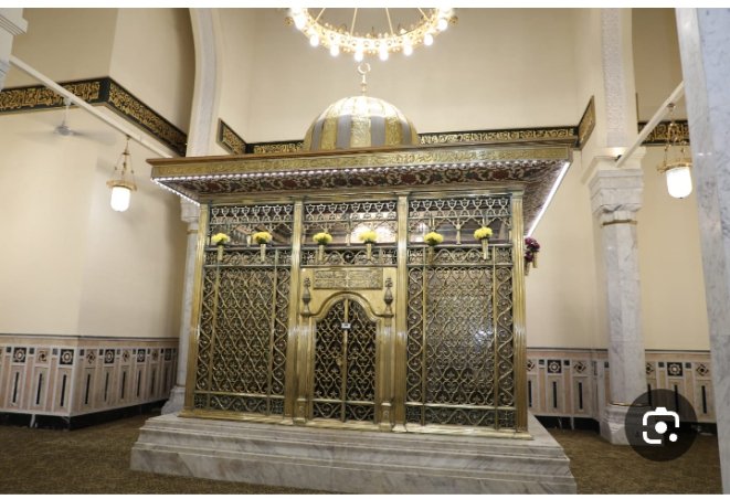 – مقام داخلي بقبة حديثة نسبيًا، تحيط به مقصورة معدنية.
